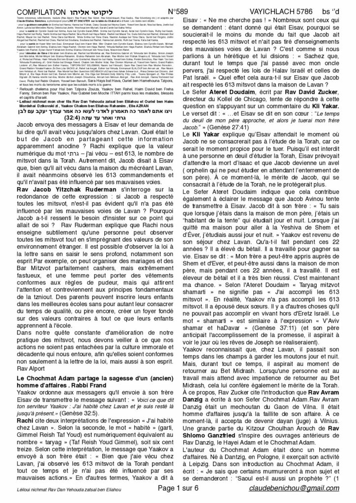 Dvar Torah Vayichla’h