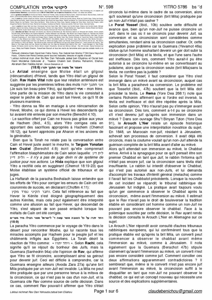 Cours & Divrei Torah